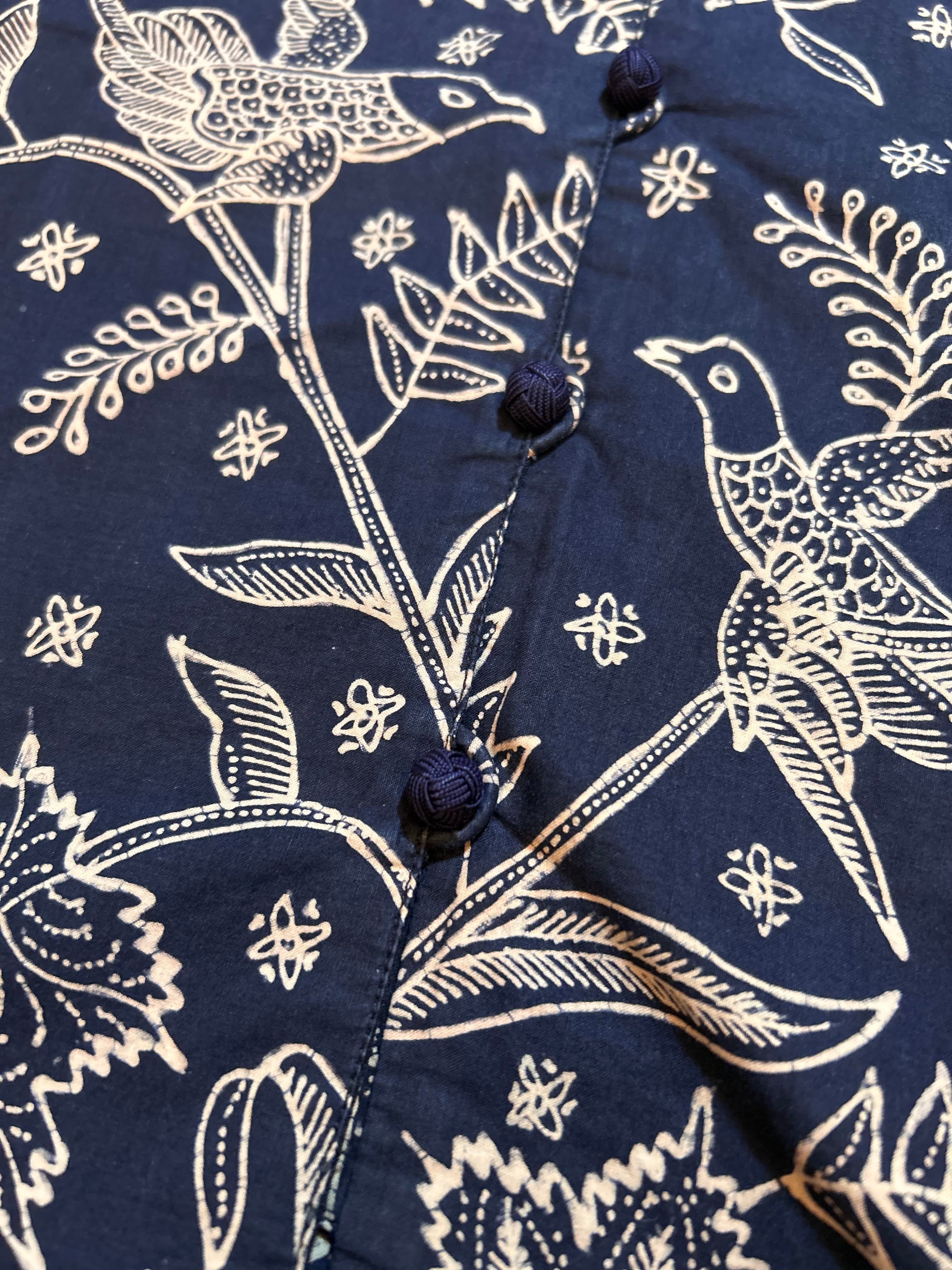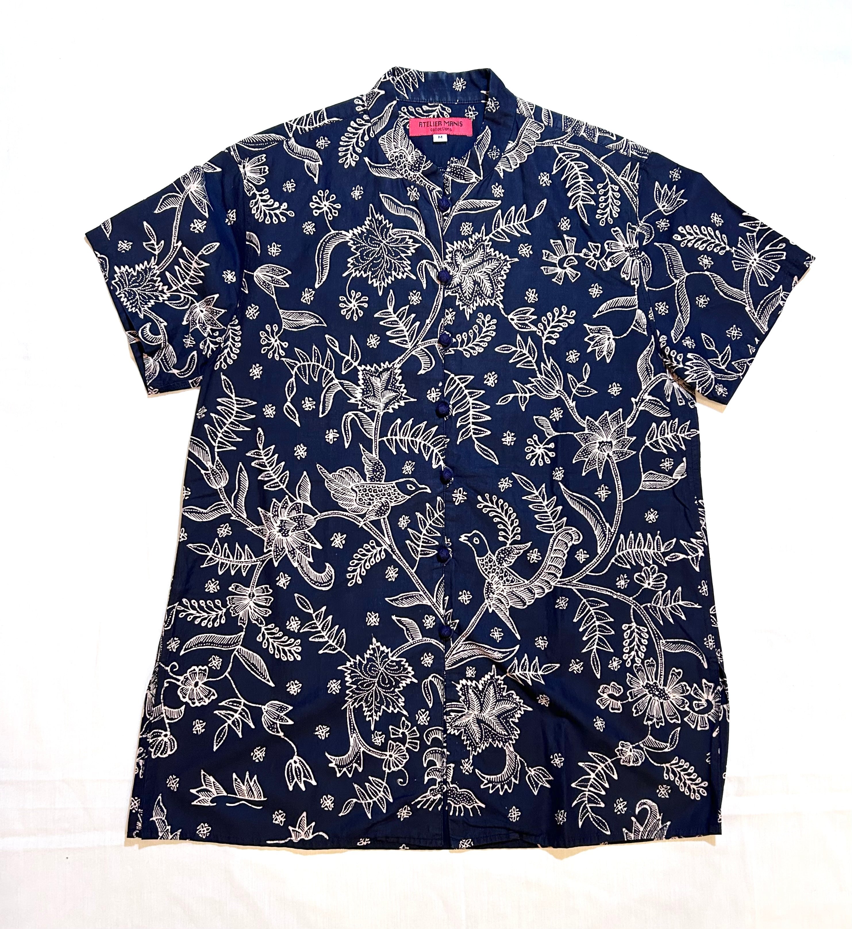 14 手描きバティックの半袖シノワ ユーズド・Mサイズ