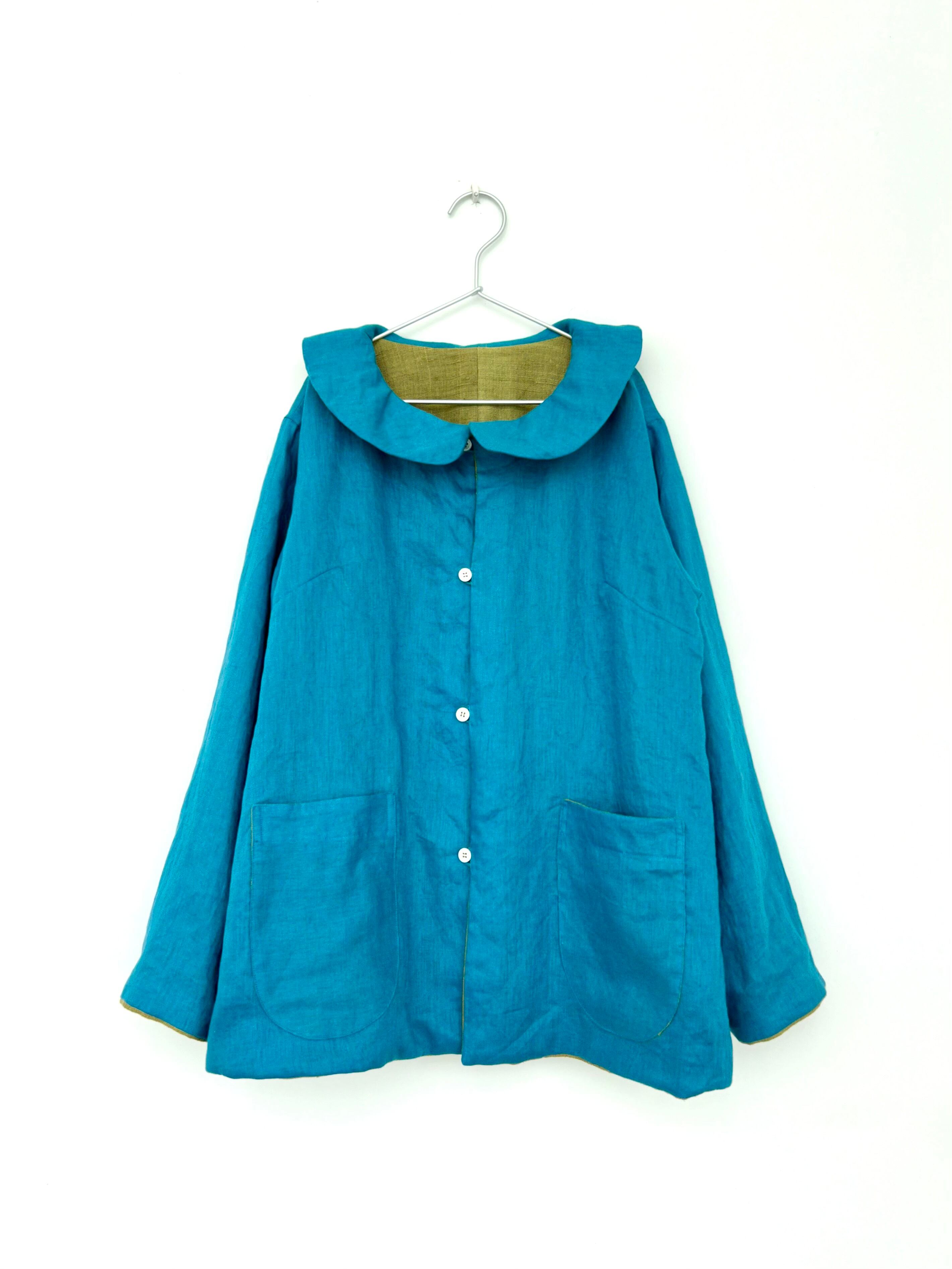 表面の襟は裏生地がはみ出すように縫っていてパイピングのようにも見えます。