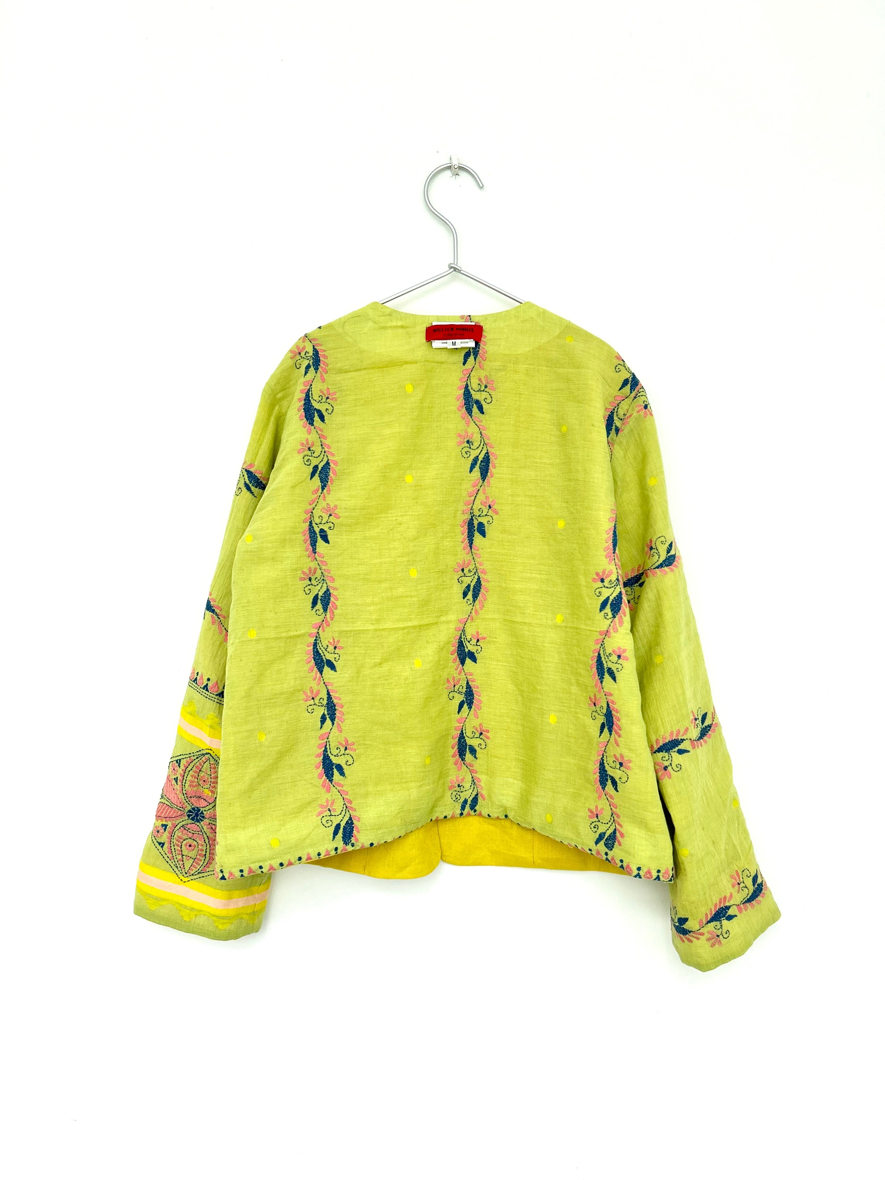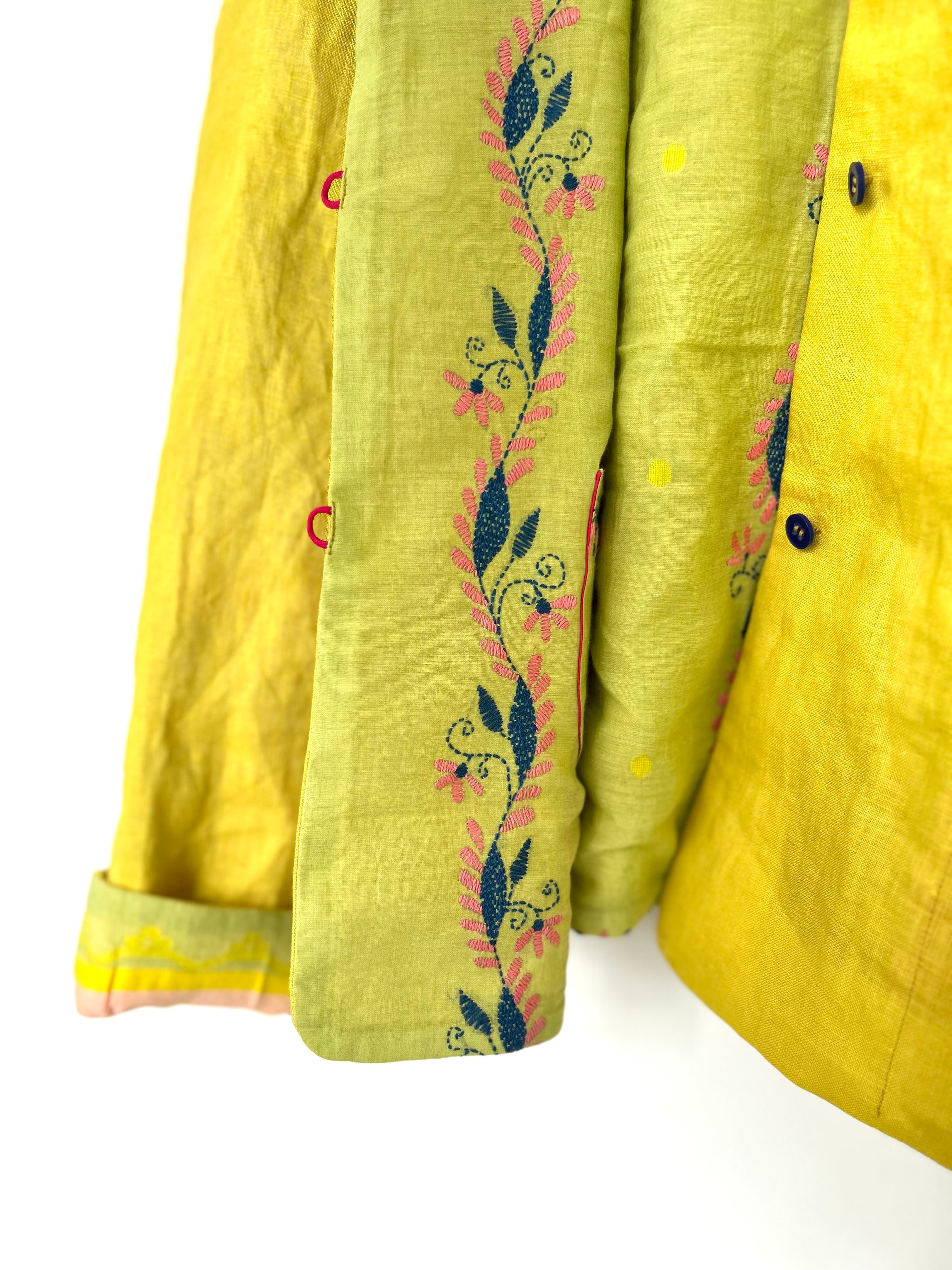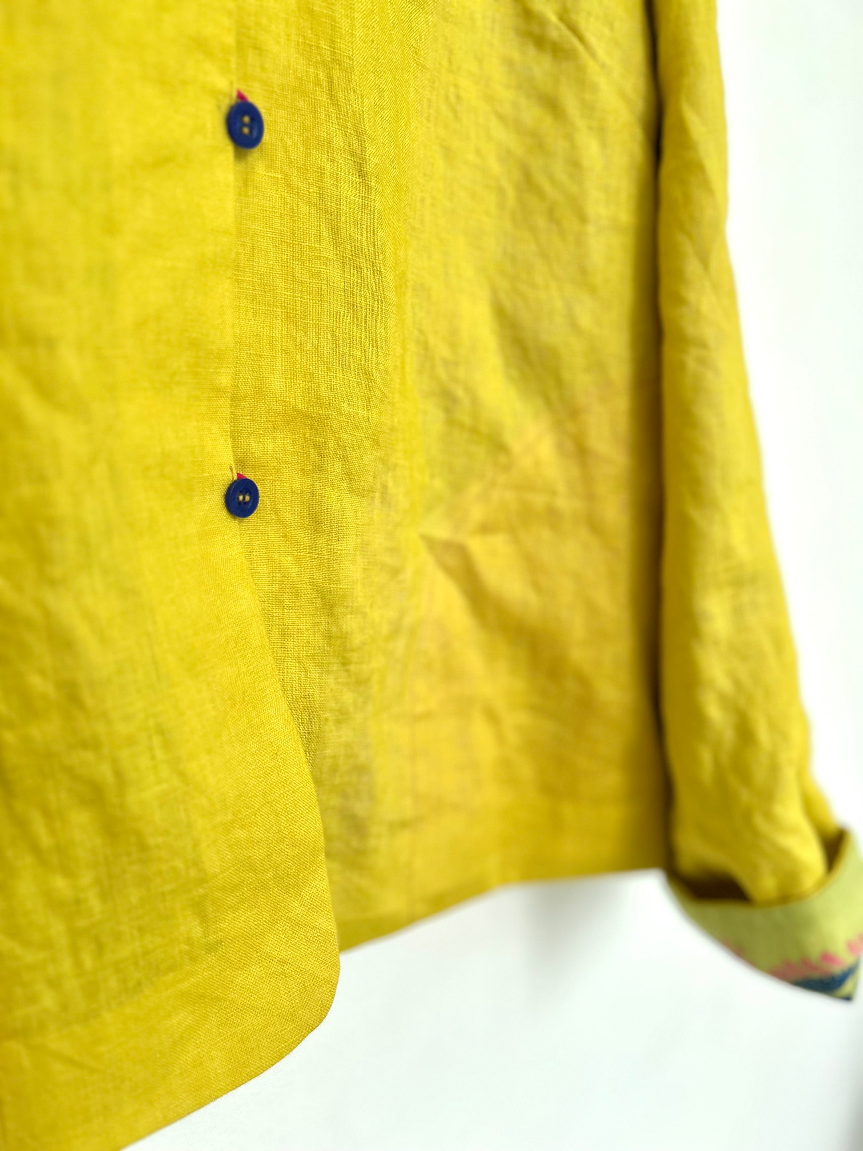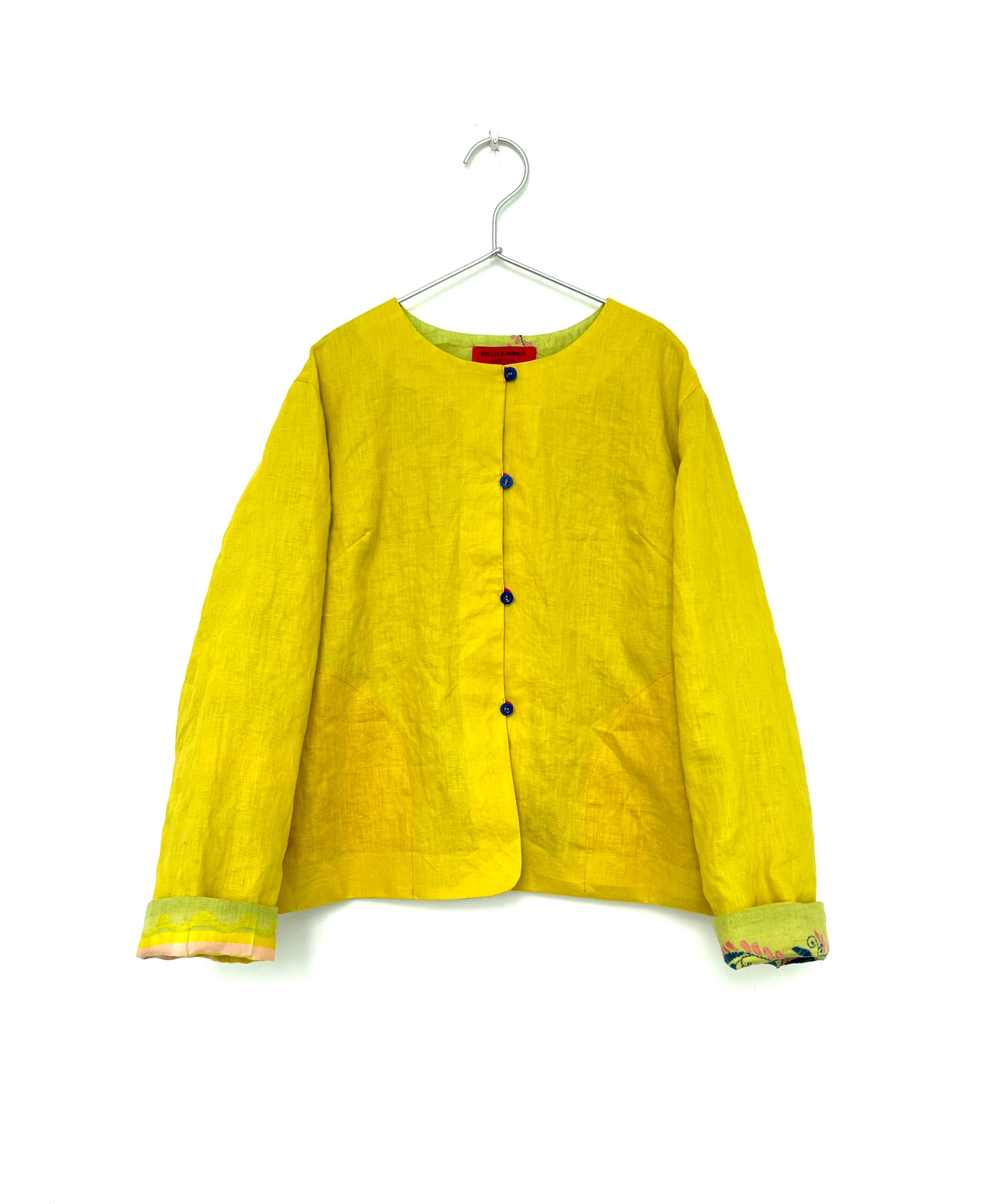 イエローの表地はしっかり目の後染めリネンキャンブリック、